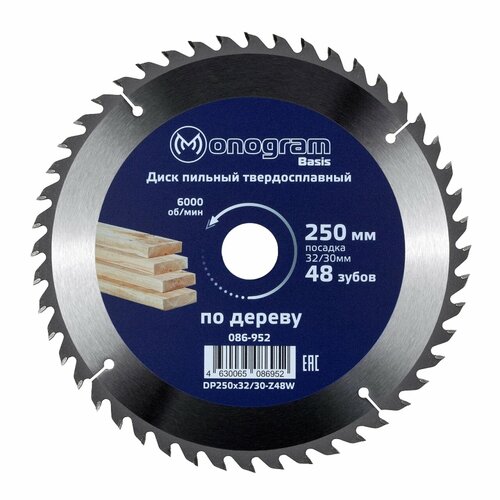 Купить Диск пильный по дереву Monogram Basis, 250х32/30х2.2 мм, 48 зубьев с доставкой по всей России. Диск пильный по дереву Monogram Basis, 250х32/30х2.2 мм, 48 зубьев: сравнение цен, характеристики, фото, актуальное наличие и цены.