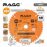 Диск пильный по дереву Rage by Vira Universal 250х30х1,7 мм 48 зубьев (594237): сравнение цен, характеристики, фото, актуальное наличие и цены.