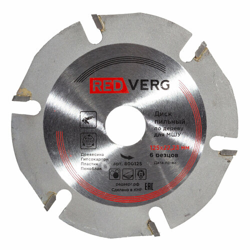 Диск пильный по дереву REDVERG для МШУ 125*22,23 мм, 6 резцов (800125): сравнение цен, характеристики, фото, актуальное наличие и цены.