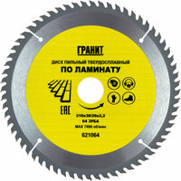 Купить Диск пильный Гранит, для ламината, 210×30/20.64 мм, 64 зуба, твердосплавный, 1 шт с доставкой по всей России.
