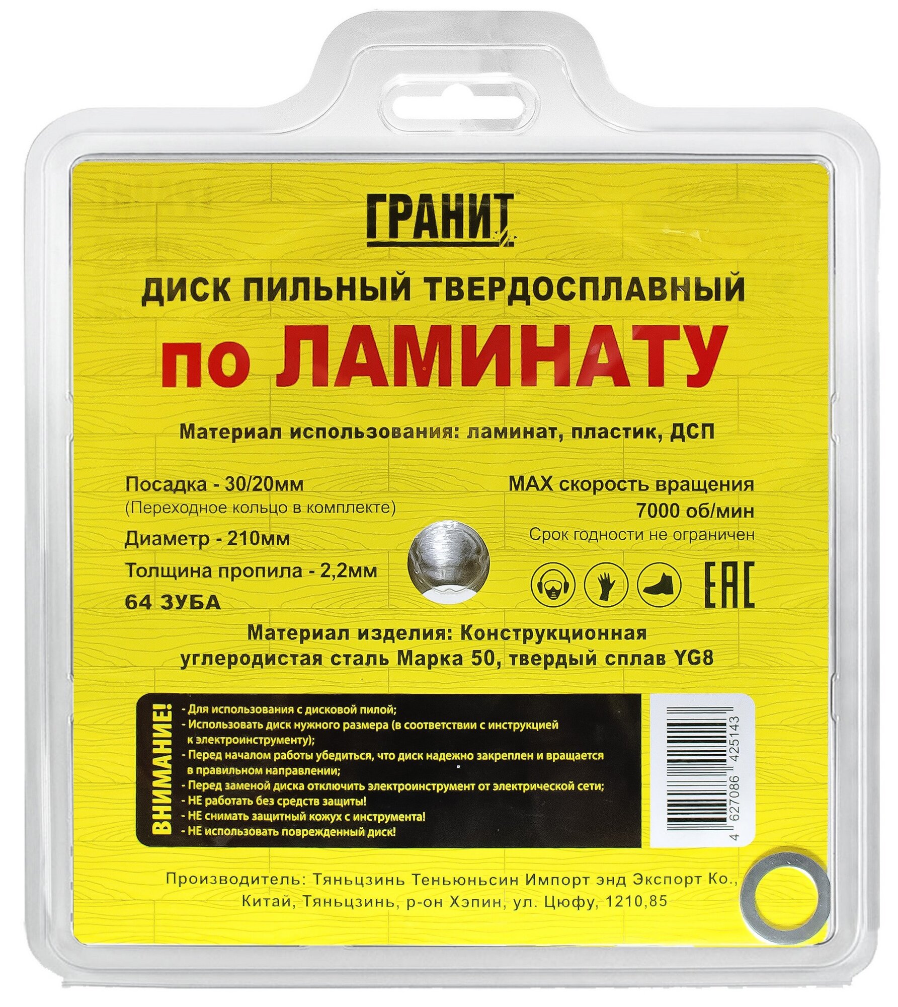 Диск пильный Гранит, для ламината, 210×30/20.64 мм, 64 зуба, твердосплавный, 1 шт: сравнение цен, характеристики, фото, актуальное наличие и цены.