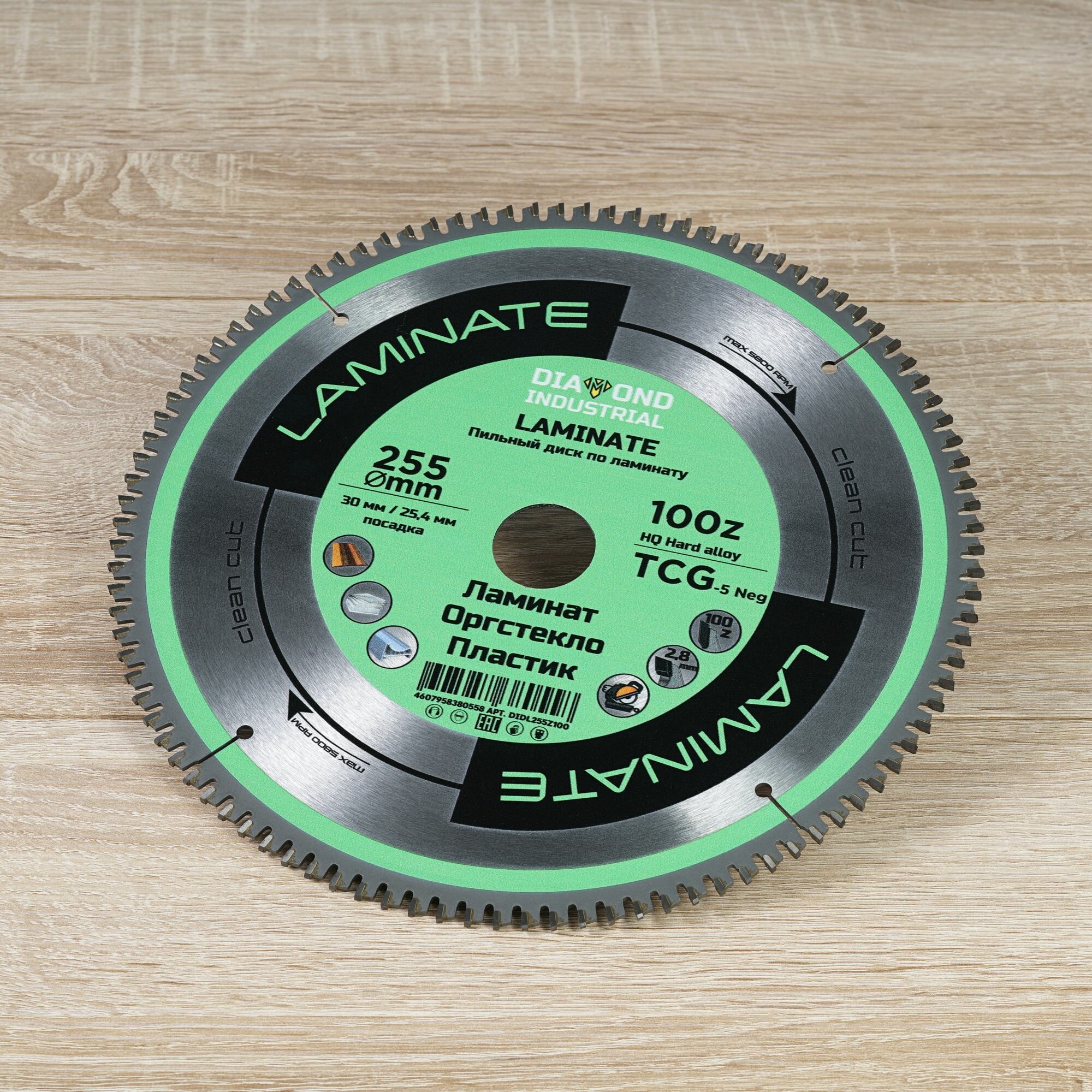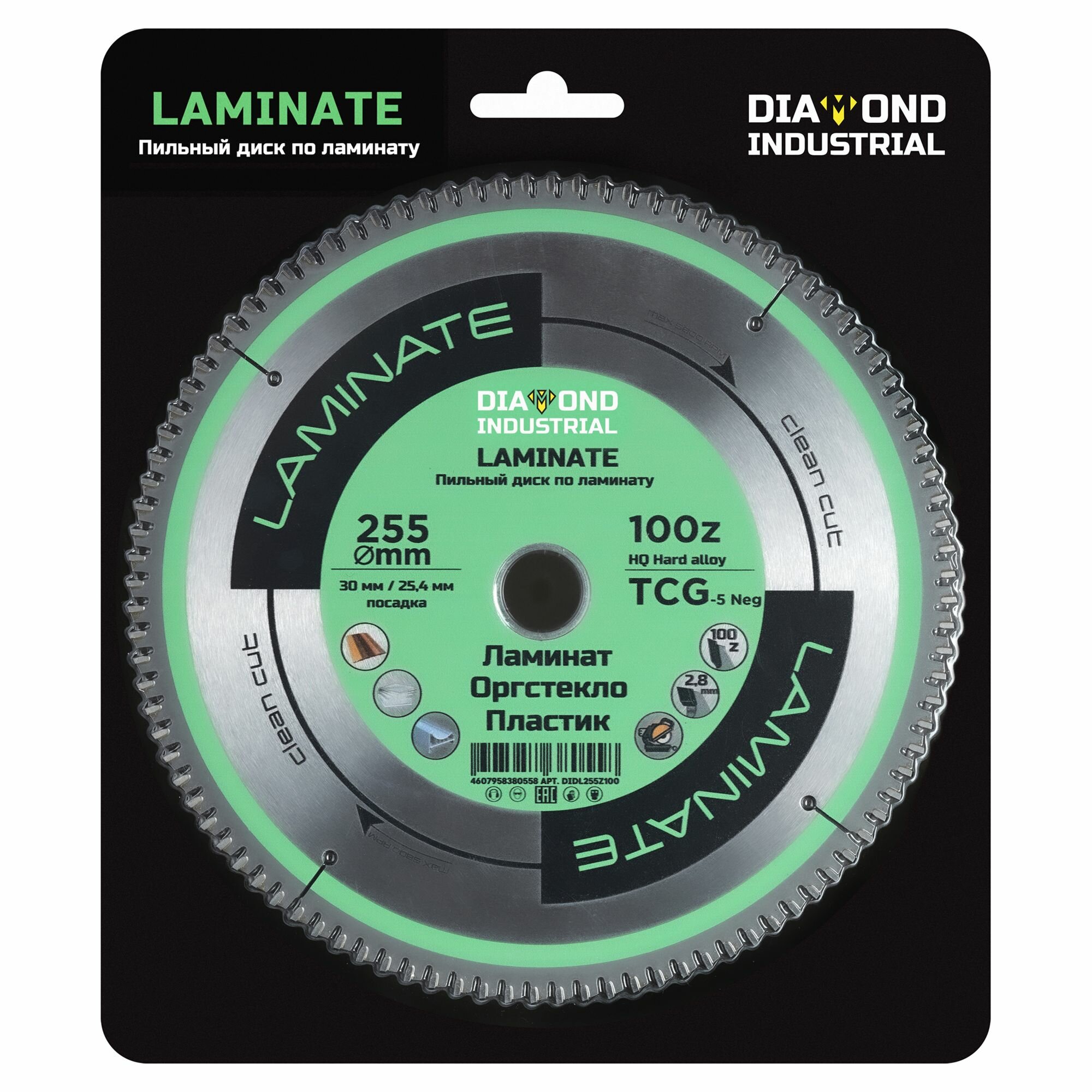 Диск пильный 255x30/25,4 мм 100Z (TCG) DIAMOND INDUSTRIAL DIDL255Z100 серия LAMINATE – диск профессионального качества для работ по ламинату, оргстеклу, пластику.