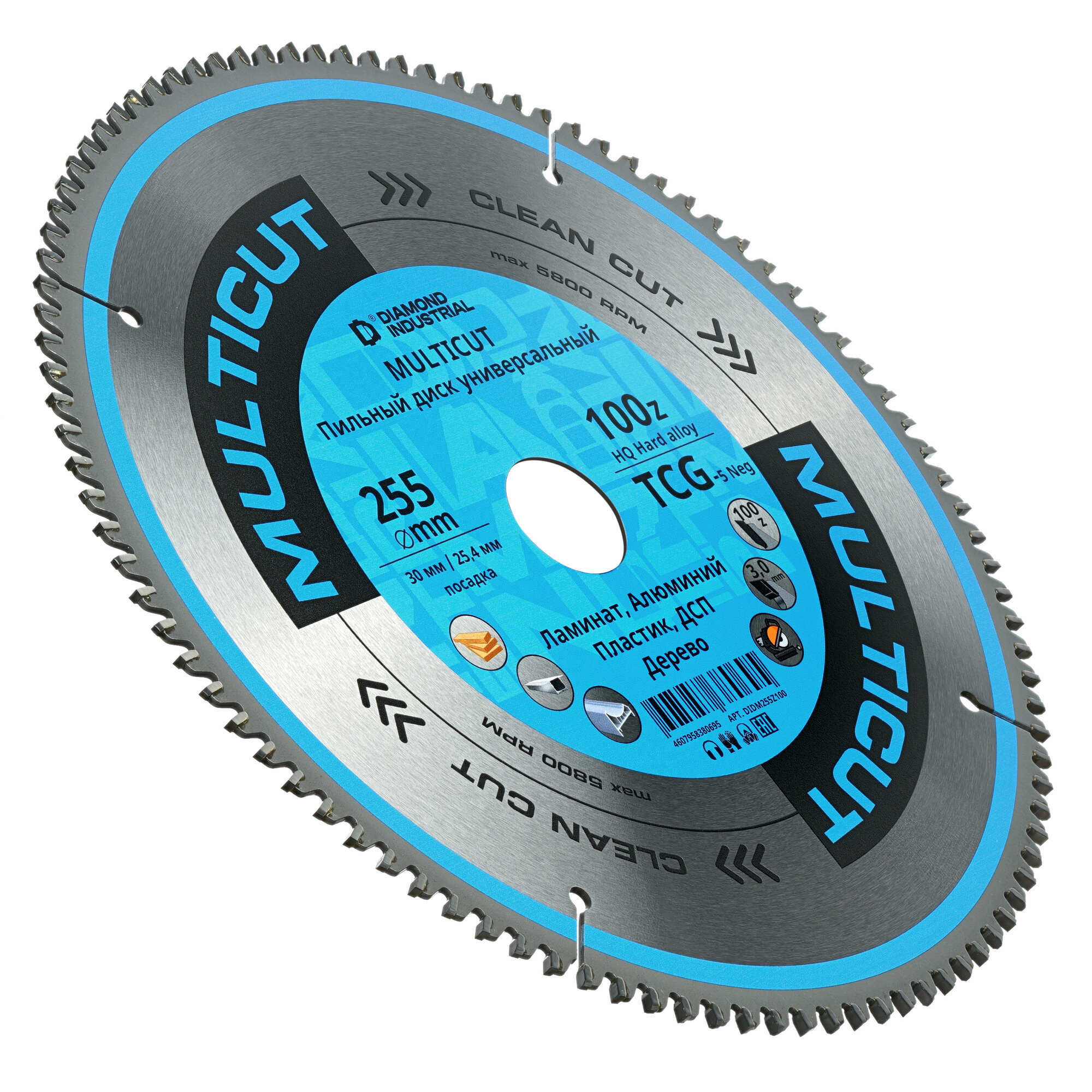 Диск пильный 255x30/25.4 мм 100Z (TCG) DIAMOND INDUSTRIAL DIDM255Z100 серия MULTICUT – диск профессионального качества для работ по алюминию, цветным металлам, пластику, ламинату, ДСП, дереву, комбинированным материалам.