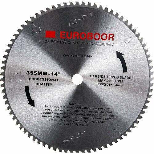Купить Диск пильный TCT по металлу (355х2.4х25.4 мм; 80 зубьев) Euroboor 130.355/80 с доставкой по всей России. Диск пильный TCT по металлу (355х2.4х25.4 мм; 80 зубьев) Euroboor 130.355/80: сравнение цен, характеристики, фото, актуальное наличие и цены.