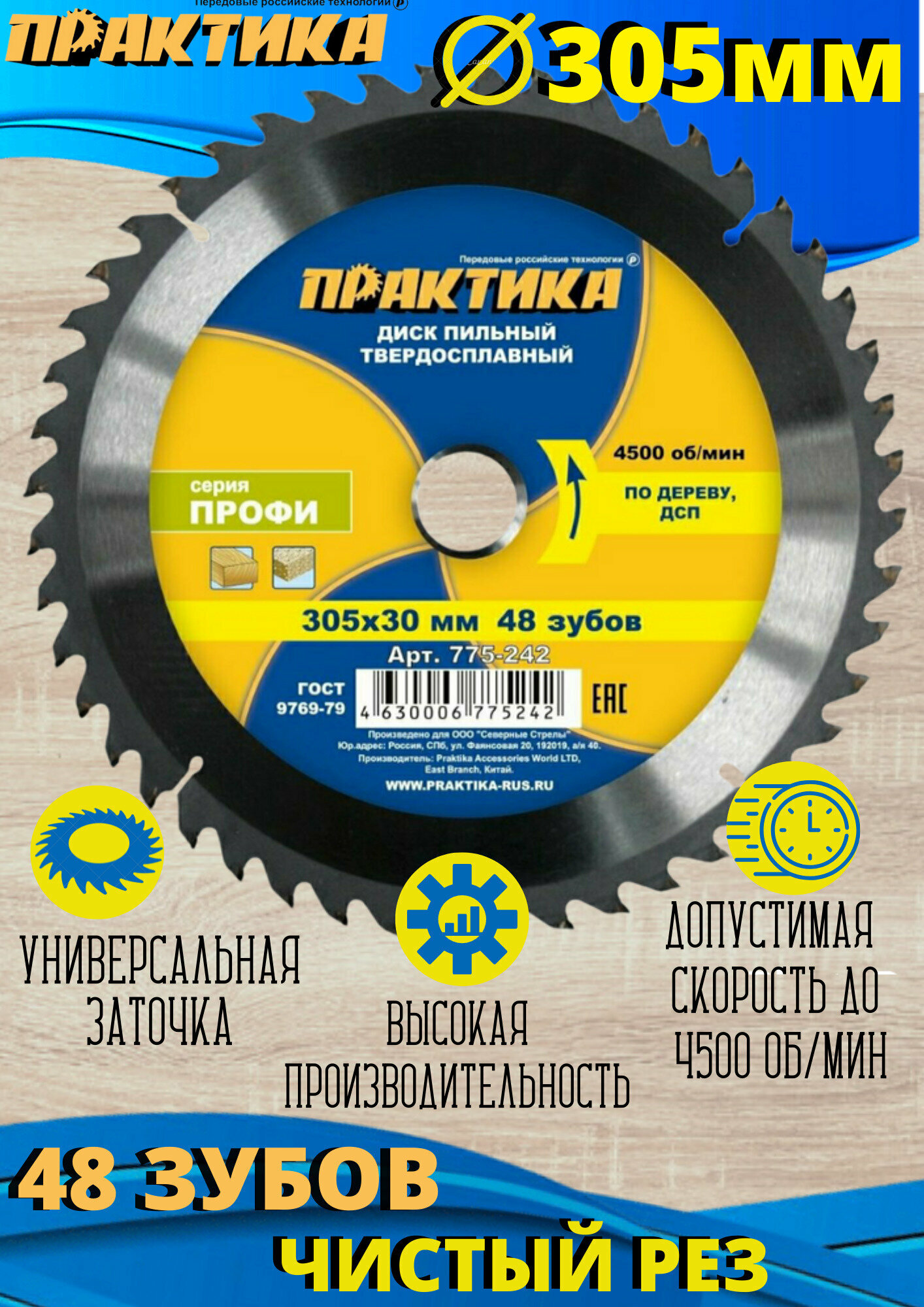Купить Диск пильный по дереву 305 x 30 x 48T Практика (775-242) с доставкой по всей России. Диск пильный по дереву 305 x 30 x 48T Практика (775-242): сравнение цен, характеристики, фото, актуальное наличие и цены.