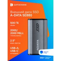 Внешний SSD диск Adata SE880 - это портативное и надежное решение для хранения и передачи данных. Он обеспечивает высокую скорость передачи данных благодаря интерфейсу подключения USB 3.2 Type C.