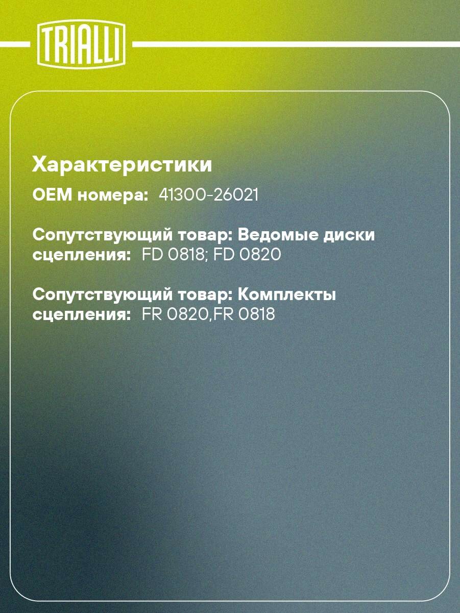 Диск сцепления нажимной (корзина) для автомобилей Solaris (17-) 1.6i 6MT FS 0820 TRIALLI: сравнение цен, характеристики, фото, актуальное наличие и цены.