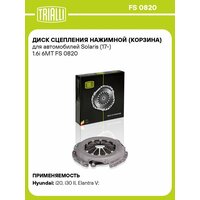 Диск сцепления нажимной (корзина) для автомобилей Solaris (17-) 1.6i 6MT FS 0820 TRIALLI