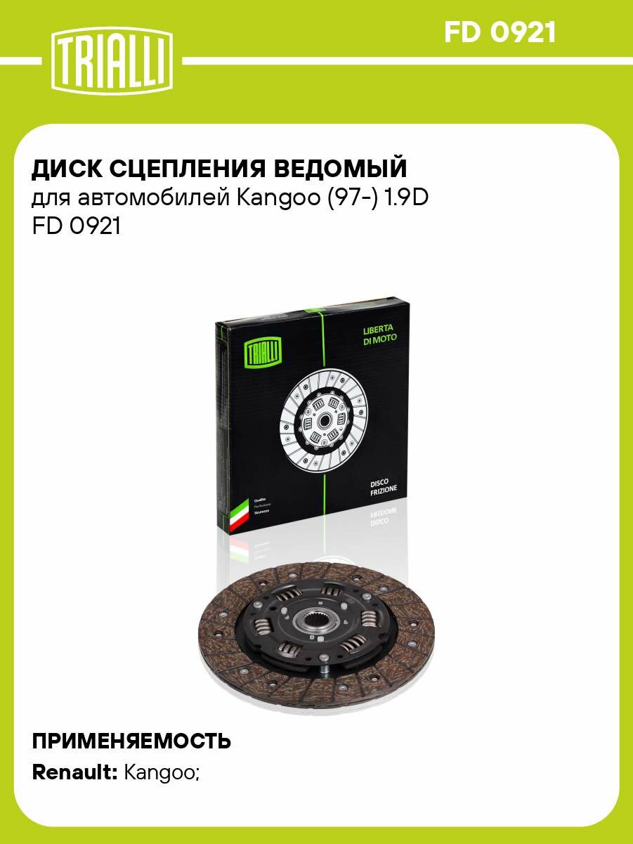 Диск сцепления ведомый для автомобилей Kangoo (97-) 1.9D FD 0921 TRIALLI: сравнение цен, характеристики, фото, актуальное наличие и цены.