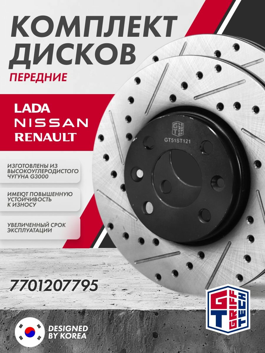 Купить Диск тормозной 2 ШТ GRIFF TECH Лада Ларгус Веста Х-Рэй передний 7701207795 с доставкой по всей России.