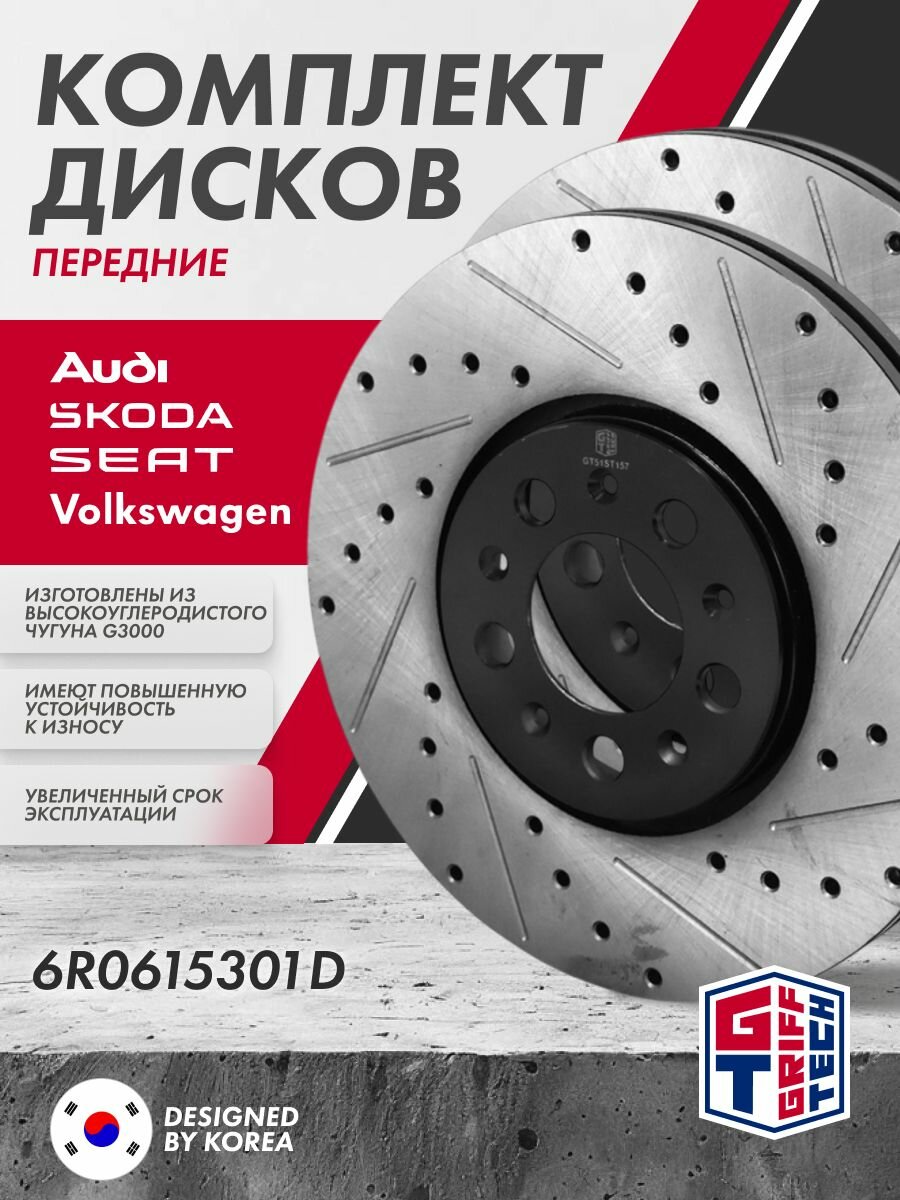 Диск тормозной 2 ШТ GRIFF TECH Шкода Октавия А4 Фольксваген Поло Седан передний 6R0615301D