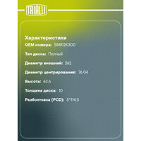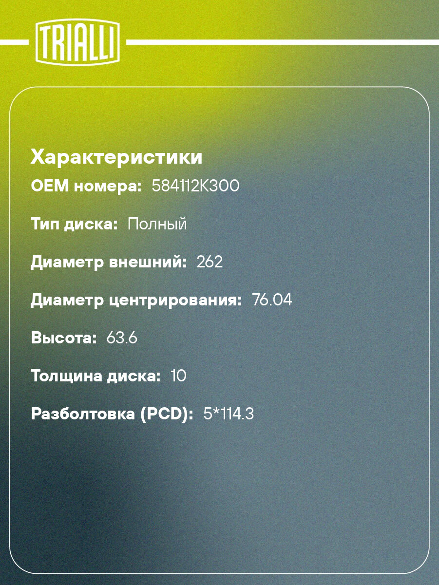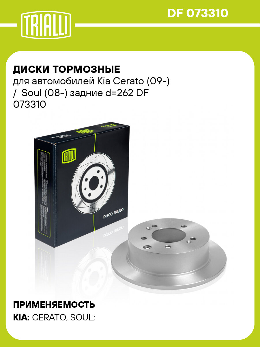 Диск тормозной для автомобилей Kia Cerato (09-) / Soul (08-) задний d=262