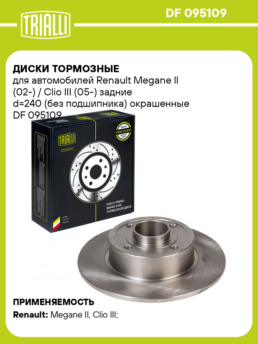 Диски тормозные для автомобилей Renault Megane II (02-) / Clio III (05-) задние d=240 (без подшипника) окрашенные