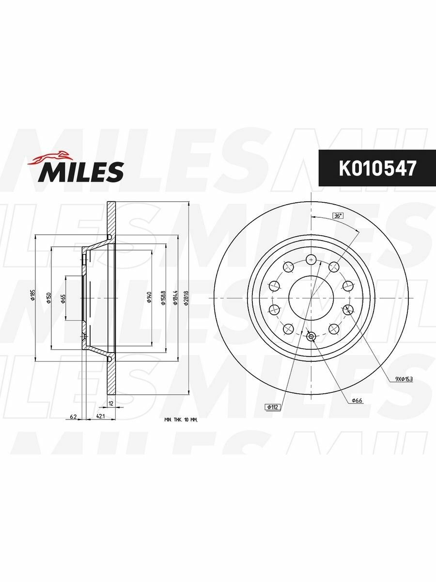 Тормозной диск задний для а/м Audi A3, Skoda Superb, SEAT Toledo, Volkswagen Passat, MILES K010547: сравнение цен, характеристики, фото, актуальное наличие и цены.