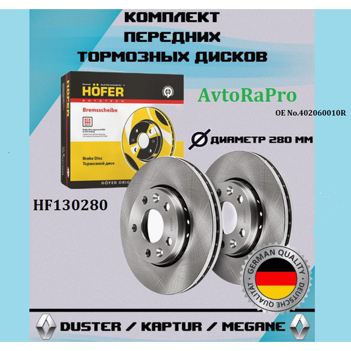 Диск тормозной передний HOFER HF130280 (280мм) для а/м Renault Duster (10-), Laguna, Arkana, Megan, Nissan Terrano III Подходят для автомобилей: Terrano III (D10) Arkana (LCM_) Captur II (HF_) DUSTER (HM_) (HM_) Duster (HSA/M_) Fluence (L30_) Grand Scenic III (JZ0/1_) Laguna Grandtour III (KT0/1) Laguna купе III (DT0/1_) Laguna хэтчбек III (BT0/1) Megane CC III (EZ0/1_) Megane Grandtour IV (K9A/M) Megane Grandtour III (KZ0/1) Megane IV седан IV (LVA_) Megane купе III (DZ0_) Megane хетчбек IV (B9A/M) Megane хэтчбек III (BZ0_) Scenic III (JZ0/1_) SCENIC III VAN (JZ0/1_) (JZ0/1_) Zoe (BFM_) Duster (HM_) Duster II (HS_) Duster фургон