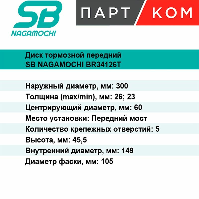 Диск тормозной передний SB NAGAMOCHI BR34126T для а/м Chevrolet Tracker, Opel Mokka 300х26: сравнение цен, характеристики, фото, актуальное наличие и цены.