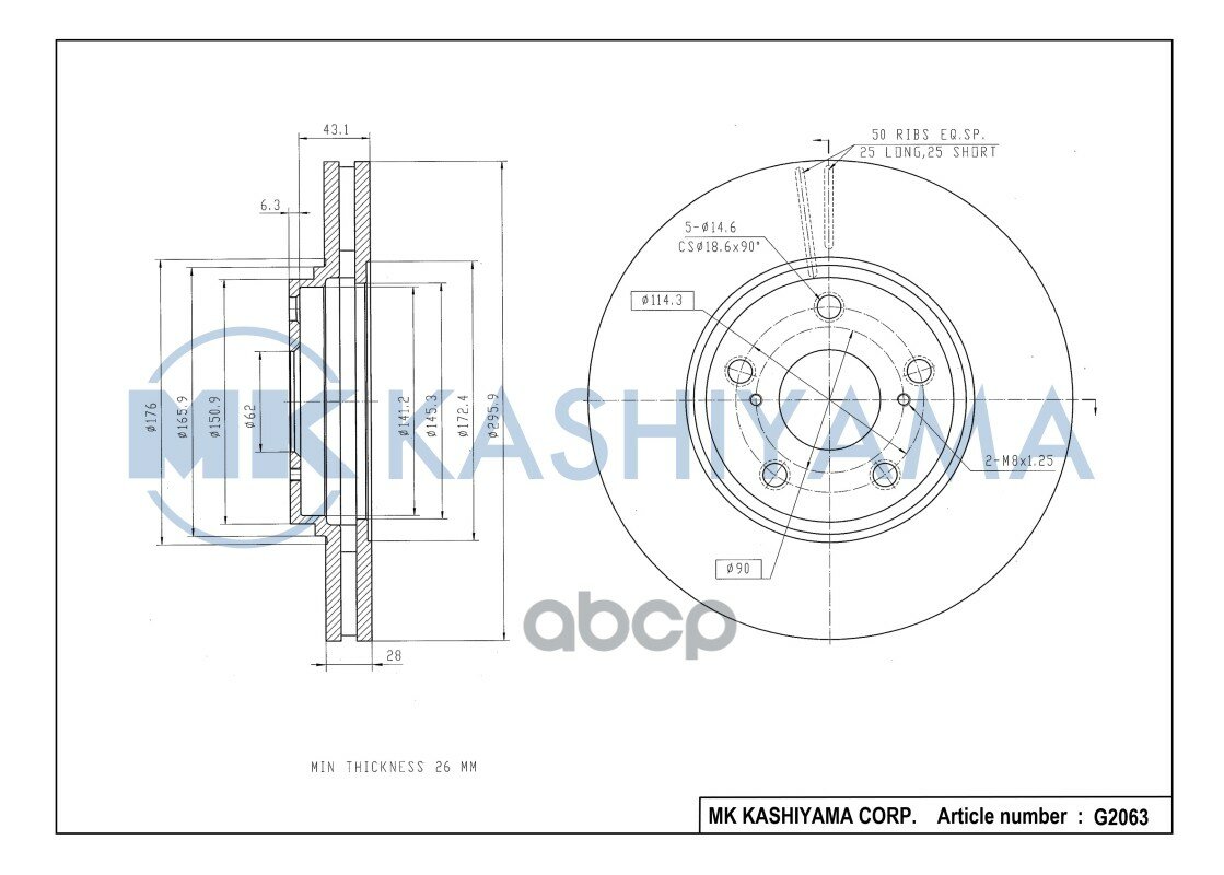 Купить Диск тормозной передний TOYOTA CAMRY (V30) 2.4-3.0, PREVIA (R3) 2.4 G2063 MK KASHIYAMA арт. G2063 с доставкой по всей России.