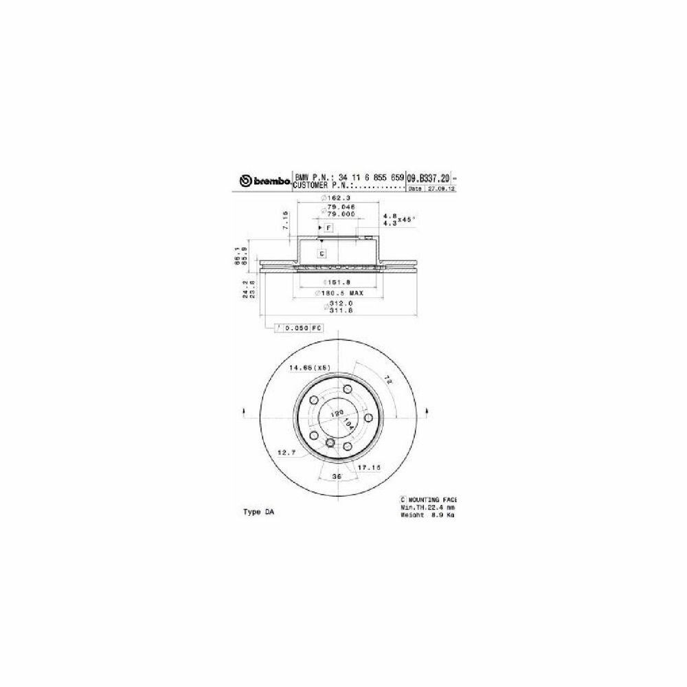 Диск тормозной передний вентилируемый 312 мм, BREMBO 09B33721, для а/м BMW: сравнение цен, характеристики, фото, актуальное наличие и цены.