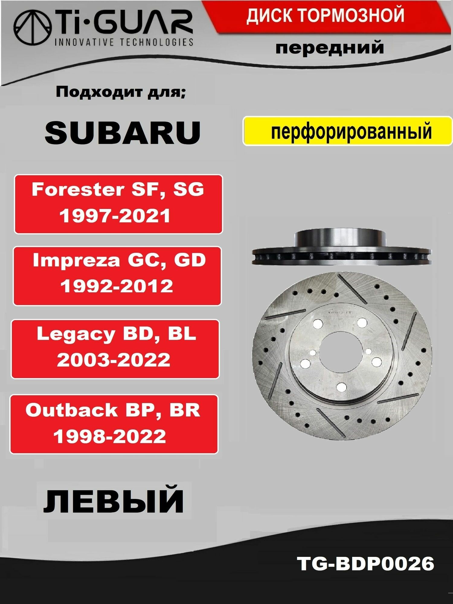Диск тормозной (перфорированный) передний левый для Subaru Forester 1997-2021, Impreza 1992-2012 , Legacy 2003-2022, Outback 1998-2022: сравнение цен, характеристики, фото, актуальное наличие и цены.