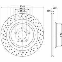 Особенности конструкции: Перфорированный Ось: задняя Тип диска: Вентилируемый Диаметр внешний: 345 мм Диаметр центрирования: 67 мм Высота: 54 мм Толщина диска: 22 мм Мин. толщина диска: 19.4 мм Количество креп. отверстий: 5 Диаметр располож. креп. отверстий: 112 мм Разболтовка (PCD): 5*112 Товарная линейка: BLACK Финишное покрытие E-Coating (глянцевый черный цвет) Вес кг: 8.4 Количество в коробке, шт. 2