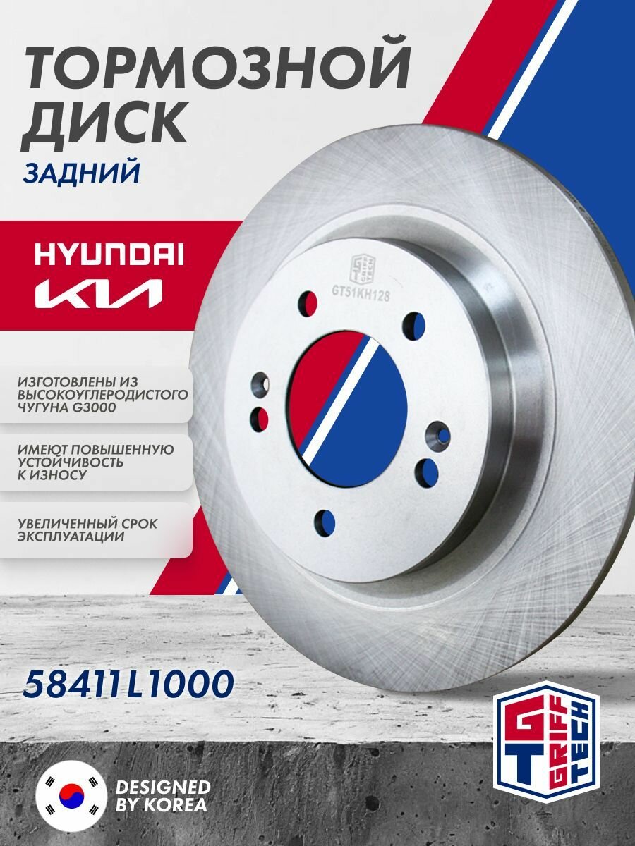 Купить Тормозной диск задний GRIFF TECH для KIA K5 (2020-.) (2.0) / Hyundai Sonata (2019-.) / Киа К5 / Хендай Соната 58411L1000 с доставкой по всей России.