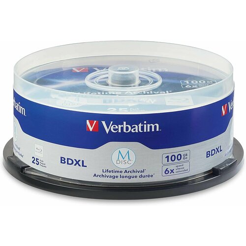Диски чистые Verbatim Blu-ray M-DISC BDXL 100Gb 6X, Cake Box, 25 штук, branded: сравнение цен, характеристики, фото, актуальное наличие и цены.