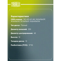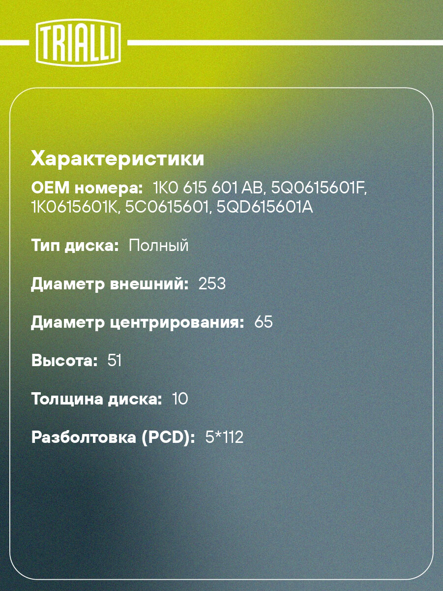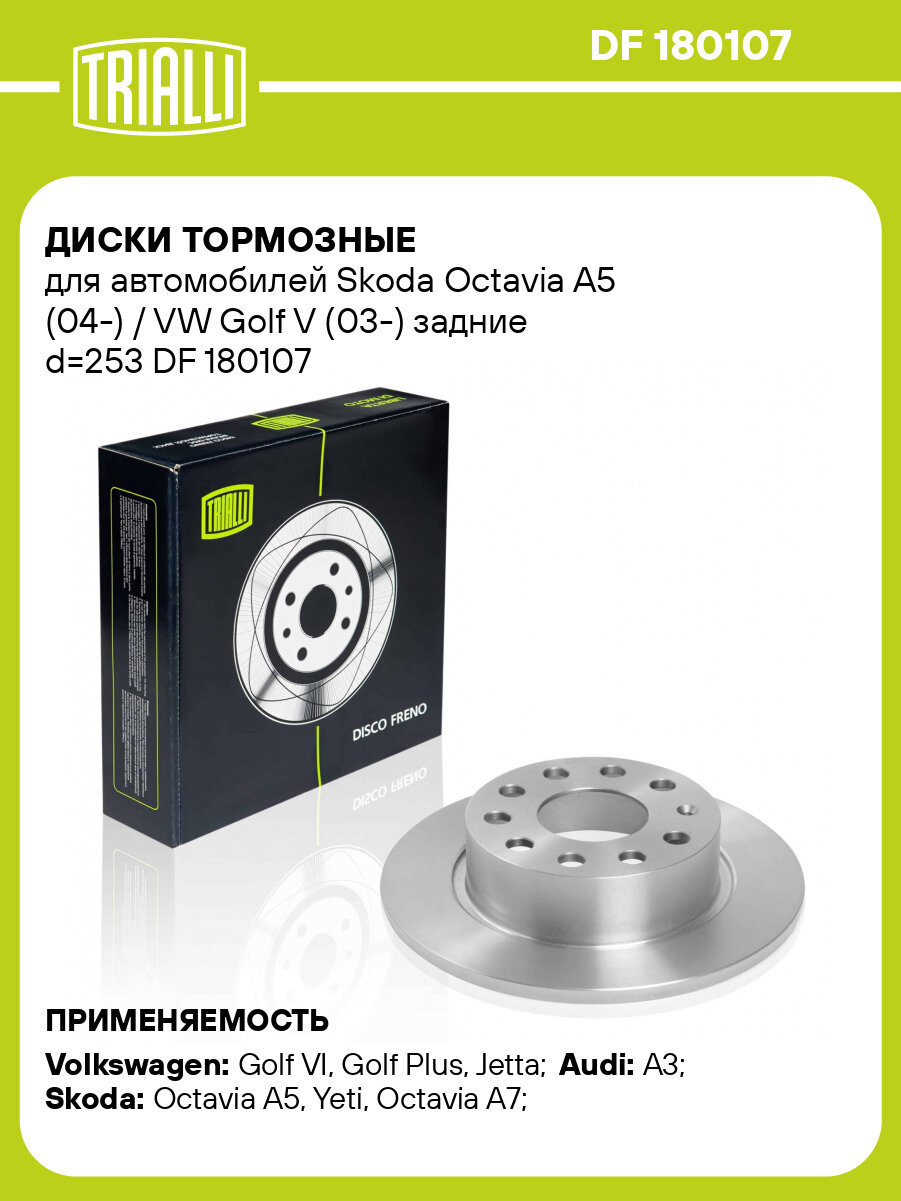Диски тормозные для автомобилей Skoda Octavia A5 (04-) / VW Golf V (03-) задние d=253 h=51.2 DF 180107 TRIALLI: сравнение цен, характеристики, фото, актуальное наличие и цены.