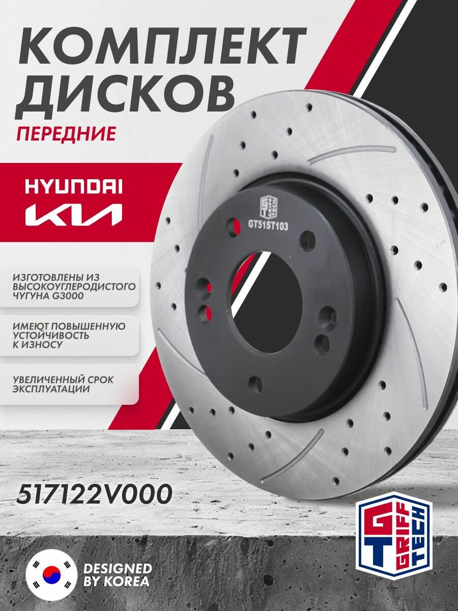 Купить Комплект перфорированных передних тормозных дисков GRIFF TECH 280мм 15″ KIA Ceed / Hyundai Elantra (2010 — ) / 517122V000 с доставкой по всей России.