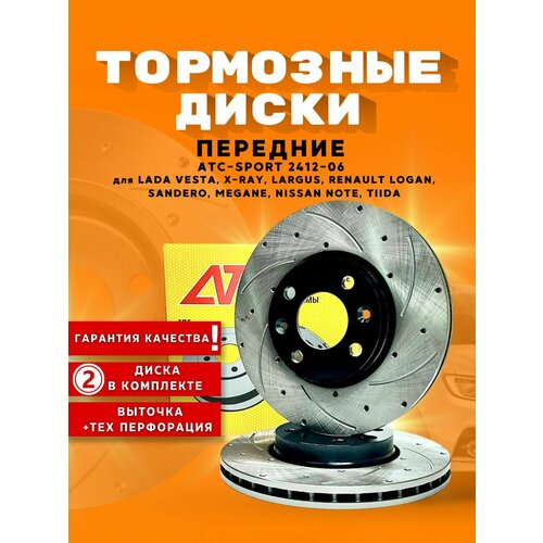 Купить Диски тормозные передние перфорированные ATC-SPORT 2412-06 LADA VESTA, XRAY, LARGUS, RENAULT LOGAN, SANDERO, MEGANE, NISSAN MICRA с доставкой по всей России.