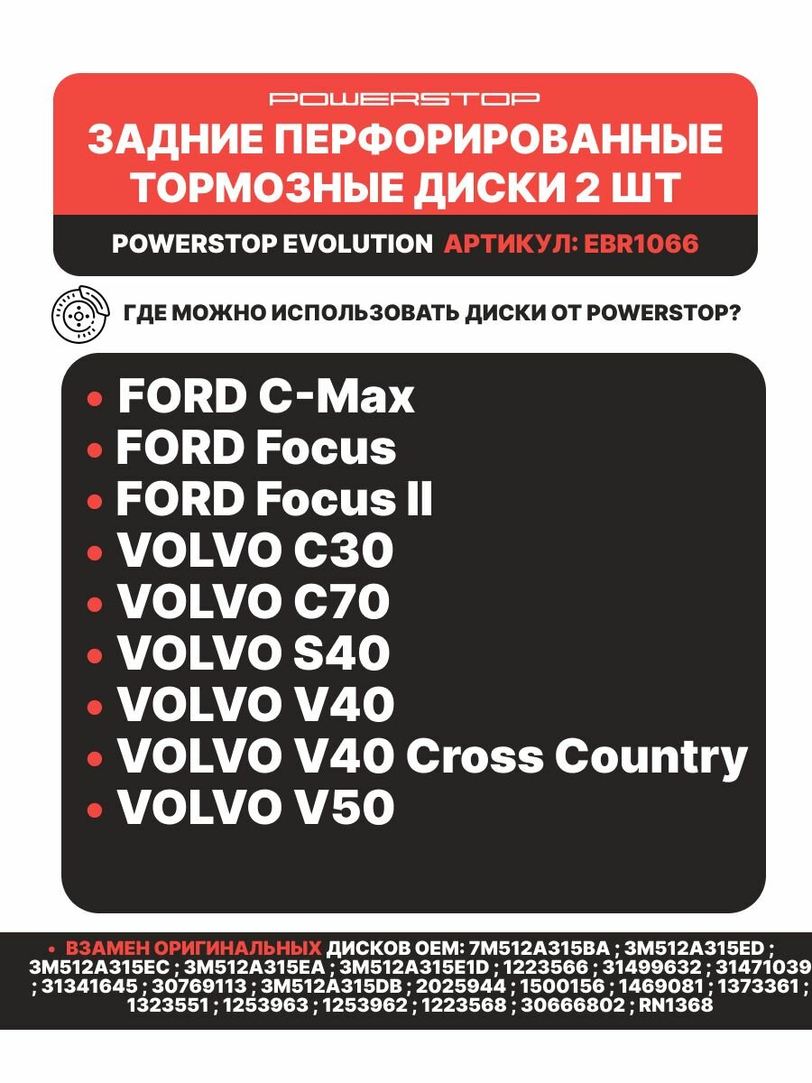 Купить Диски тормозные задние 2шт. PowerStop Evolution с перфорацией и насечками на VOLVO C / FORD Focus II с доставкой по всей России. Диски тормозные задние 2шт. PowerStop Evolution с перфорацией и насечками на VOLVO C / FORD Focus II: сравнение цен, характеристики, фото, актуальное наличие и цены.