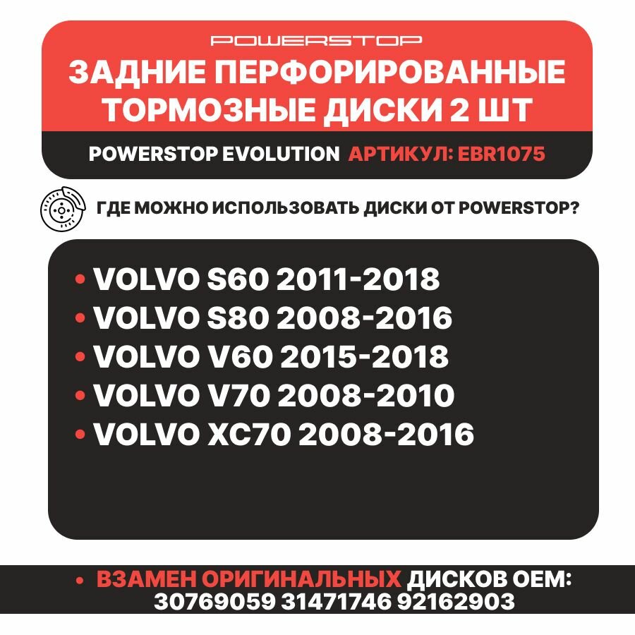 Купить Диски тормозные задние 2шт. PowerStop Evolution с перфорацией и насечками на VOLVO S60 / S80 / V60 / V70 / XC70 с доставкой по всей России. Диски тормозные задние 2шт. PowerStop Evolution с перфорацией и насечками на VOLVO S60 / S80 / V60 / V70 / XC70: сравнение цен, характеристики, фото, актуальное наличие и цены.