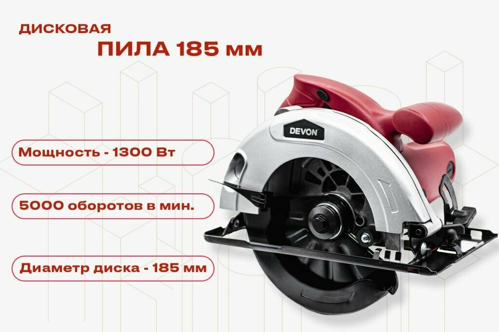 Купить Дисковая пила 185 мм DEVON циркулярная — 1300 Вт, 5000 об./мин с доставкой по всей России. Дисковая пила 185 мм DEVON циркулярная — 1300 Вт, 5000 об./мин: сравнение цен, характеристики, фото, актуальное наличие и цены.