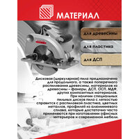 Дисковая (циркулярная) пила предназначена для продольного, а также поперечного распиливания древесины, материалов из древесины – фанеры, ДСП, ОСП, МДФ, других композитных материалов. При наличии специальных пильных дисков пила с легкостью справится с распиловкой пластика, цветных металлов, профилей из алюминиевого сплава, которые достаточно часто применяются при изготовлении офисных интерьеров и современной мебели. Инструмент эксплуатируется с диском, имеющим размер 165мм, что позволяет работать с пиломатериалом толщиной до 55 мм. Пила спроектирована и произведена в строгом соответствии с современными требованиями стандартов безопасности (в т. ч. ГОСТ IEC 60745-2-5-2014), а благодаря ряду конструкционных решений удалось облегчить конструкцию новой пилы и повысить ее надежность. Двигатель повышенной мощности обеспечивает стабильную работу при максимальной нагрузке; защита от непреднамеренного пуска; шнур питания 4 метра; популярный размер диска, обеспечивающий возможность работы с пиломатериалом до 55 мм; высокая производительность пиления; легкая стальная опорная платформа для распиливания материала под углами от прямого до 45 градусов; простая, интуитивно понятная регулировка глубины и угла наклона реза; обрезиненная основная и дополнительная рукоятки; кнопка блокировки шпинделя для удобной замены диска; конструкция, предусматривающая доступ к щеткам без вскрытия корпуса; универсальный твердосплавный пильный диск в комплекте. Гарантия: 24 месяца Спецификация Параметры сети питания, В/Гц: 220 ±10% / 50 Номинальная потребляемая мощность, Вт: 1300 Частота вращения шпинделя на холостом ходу, об/мин, не более: 6000 Размер диаметра пильного диска (max/min), мм: 165 Размер толщины пильного диска не более, мм: 2,4 Размер диаметра посадочного отверстия , мм: 20 Наибольшая глубина пропила под углом 90 градусов, мм: 55 Наибольшая глубина пропила под углом 45 градусов, мм: 34 Длина шнура питания, м, не менее: 4 Плавный пуск: нет Ограничение пускового тока: нет Регулировка оборотов: нет Защита от повторного включения: нет Поддержание оборотов: нет Защита от перегрева: нет Защита от заклинивания: нет Класс безопасности машины (по ГОСТ Р МЭК 60745-1): II Установленный срок службы, лет: 3 Масса, кг: 3,3
