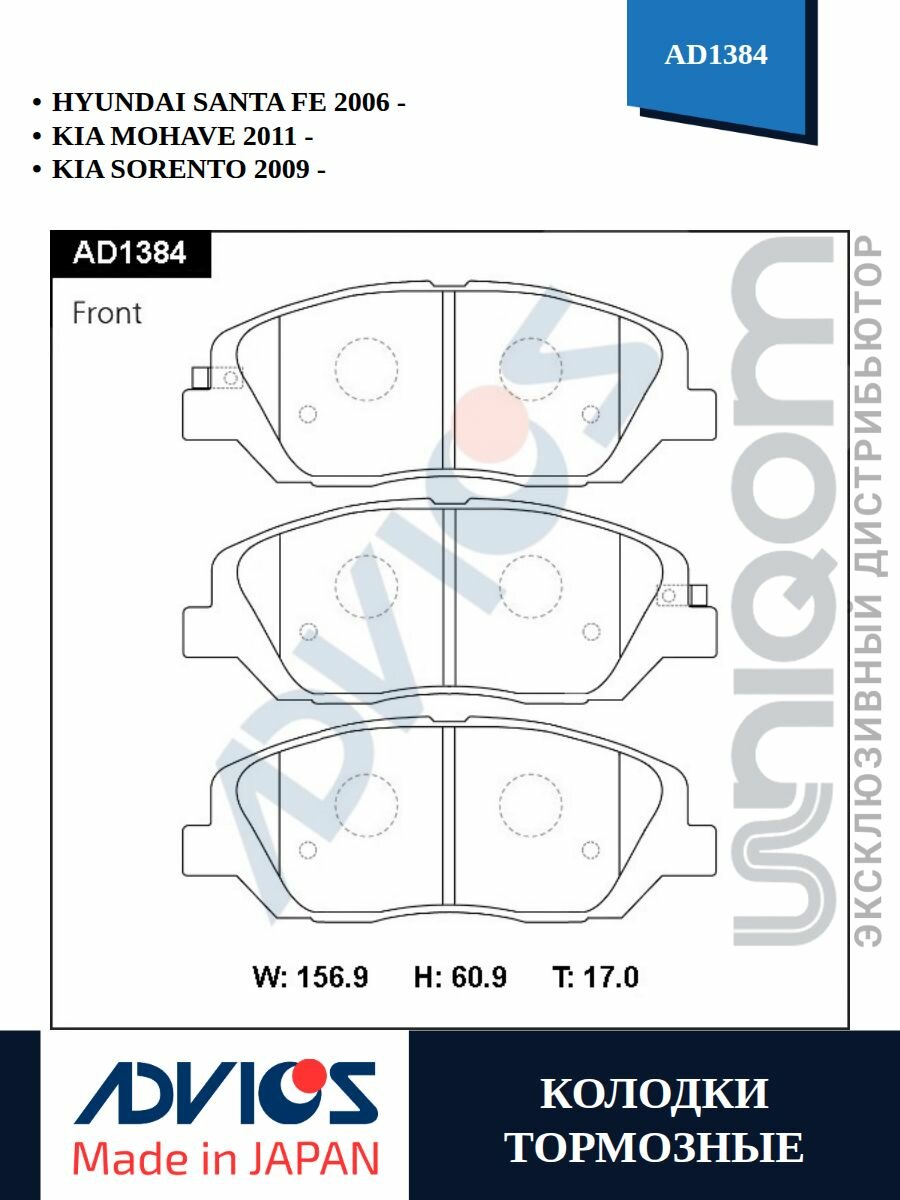 Купить Дисковые тормозные колодки передние HYUNDAI SANTA FE KIA SORENTO MOHAVE SSANGYONG ACTYON KORANDO ADVICS AD1384 с доставкой по всей России. Дисковые тормозные колодки передние HYUNDAI SANTA FE KIA SORENTO MOHAVE SSANGYONG ACTYON KORANDO ADVICS AD1384: сравнение цен, характеристики, фото, актуальное наличие и цены.