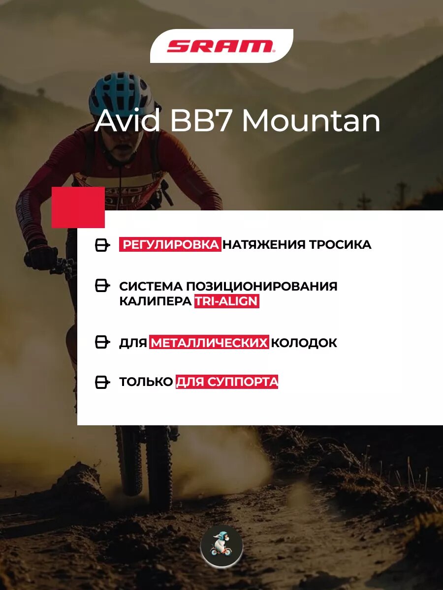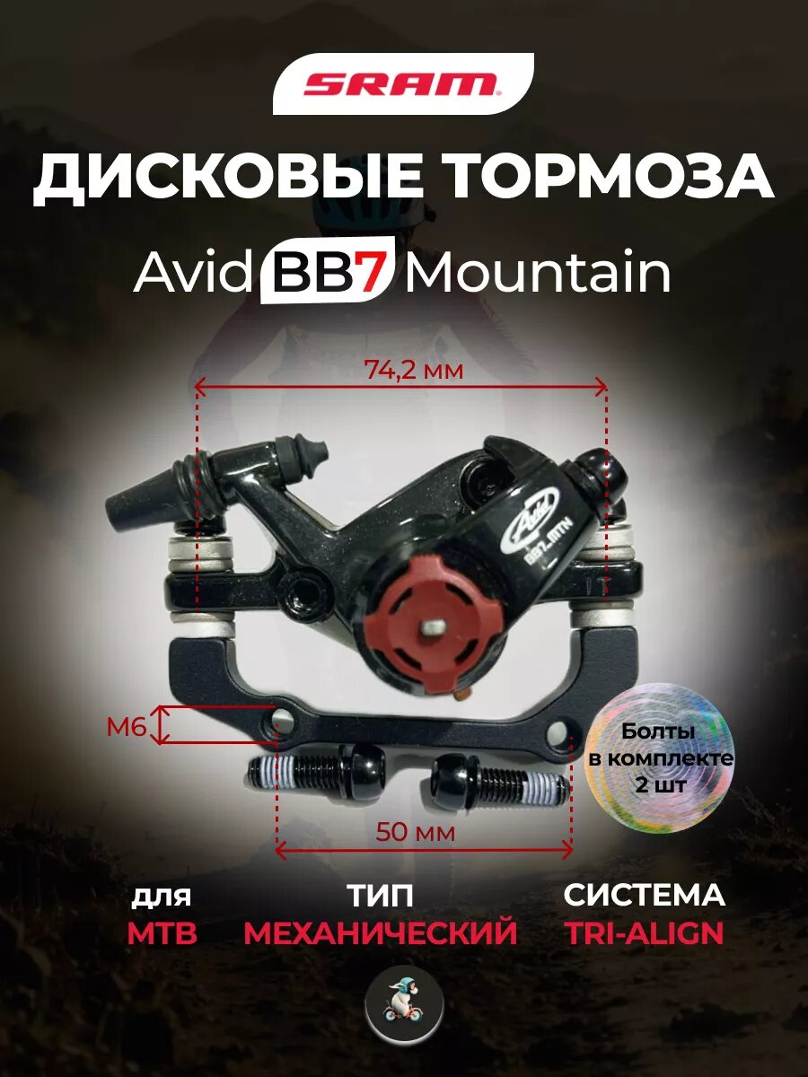 Универсальный дисковый тормоз с адаптером для заднего колеса, и стальные болты крепления в комплекте. Тормоз дисковый Avid BB7 Mountain от компании Sram (Срэм / Срам) мощные и точные. Дисковые тормоза BB7 Mountain — эталон механических дисковых тормозов, сочетающий невероятную мощность и интуитивно понятную настройку. Регулировочные винты с внутренней и внешней стороны, система позиционирования суппорта Tri-Align и регулировка натяжения пружины встроенного стопора троса — все это гарантирует высочайший стандарт торможения. Благодаря понятной и простой в использовании регулировке, калиперы BB7 задают стандарт в области механических дисковых тормозов. Ручки регулировки внутреннего и наружного положения, система позиционирования суппорта Tri-Align и встроенная регулировка натяжения пружины тросового упора являются гарантией качества от производителя Срам (Срэм) (SRAM) Особенности: • Механическая простота и надежность • Широкие возможности настройки Характеристики: • Назначение: горные велосипеды • Тип тормоза: механический • Цвет: серый • Тип колодок: спеченные металлические со стальной подложкой • В комплекте адаптер для дисков (140 мм сзади, 160 мм спереди) для установки назад - откручиваем адаптер/переходник; расстояние между болтами 74,2 мм для установки вперед - ничего откручивать не нужно; расстояние между отверстиями 50 мм Тормоза дисковые ББС Маунтин от Срэм - выбор настоящих профессионалов. Обращаем внимание, что товар с нашего склада уходит к Вам в плотной упаковке, защищающей от повреждений. Желаем Вам спортивных побед, получать удовольствие от катания и отличного настроения!