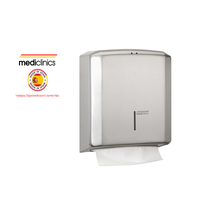 Область применения: для общественных туалетных комнат с высокой и малой проходимостью; Материал: нержавеющая сталь; AISI 304, толщиной 0,8 мм; Цельная конструкция; Антивандальный; Стильный дизайн, подходящий для любой туалетной комнаты; Макс. Размер полотенца: 260х100 мм; Вместимость (C/Z сложение): от 400 до 600 шт; Конструкция выходного отверстия для полотенец предотвращает их разрыв; Дверца крепится к корпусу при помощи двух петель, что позволяет откидывать ее для пополнения запаса полотенец; В комплект входит замок со специальным ключом Mediclinics, устанавливаемым на лицевую панель; Окошко на лицевой панели обеспечивает визуальный контроль содержимого; Задняя панель с несколькими отверстиями упрощает монтаж; Рекомендуемая высота установки: 130-160 см в нижней точке; Высота установки для лиц с ограниченными возможностями: 85-120 см в нижней точке; Вес: 1,8 кг; Габариты (ВхШхГ): 330х275х130 мм; Страна производства: Испания; Гарантийный срок: 2 года.