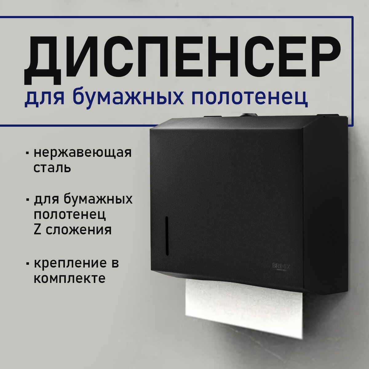 Диспенсер для бумажных полотенец BRIMIX, нержавеющая сталь, антивандальный корпус, черный: сравнение цен, характеристики, фото, актуальное наличие и цены.
