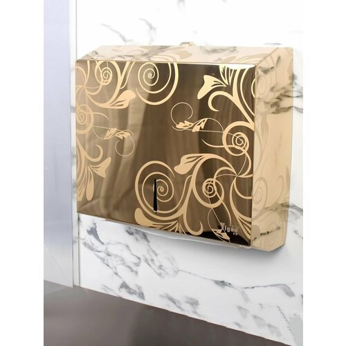 Купить Диспенсер для бумажного полотенца салфеток Z сложения, на две пачки, с ключом, из нержавеющей стали, глянцевый, золотой с узором с доставкой по всей России. Диспенсер для бумажного полотенца салфеток Z сложения, на две пачки, с ключом, из нержавеющей стали, глянцевый, золотой с узором: сравнение цен, характеристики, фото, актуальное наличие и цены.