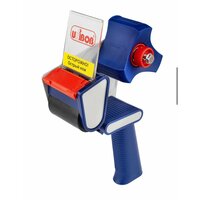 Диспенсер Unibob для клейкой упаковочной ленты шириной от 50 до 75 мм. Максимальная длина ленты для использования с диспенсером — около 200 метров. Материал корпуса: пластик. Эргономичная прорезиненная рукоятка предотвращает скольжение рук при работе. Имеет выдвижной нож и регулятор усилия натяжения ленты. Цвет — комбинированный (синий с серым).