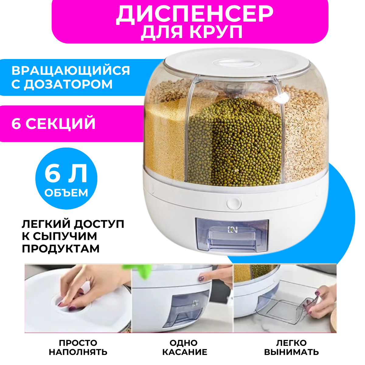 Купить Диспенсер для круп и сыпучих продуктов 8л, с дозатором, крутящийся с доставкой по всей России. Диспенсер для круп и сыпучих продуктов 8л, с дозатором, крутящийся: сравнение цен, характеристики, фото, актуальное наличие и цены.