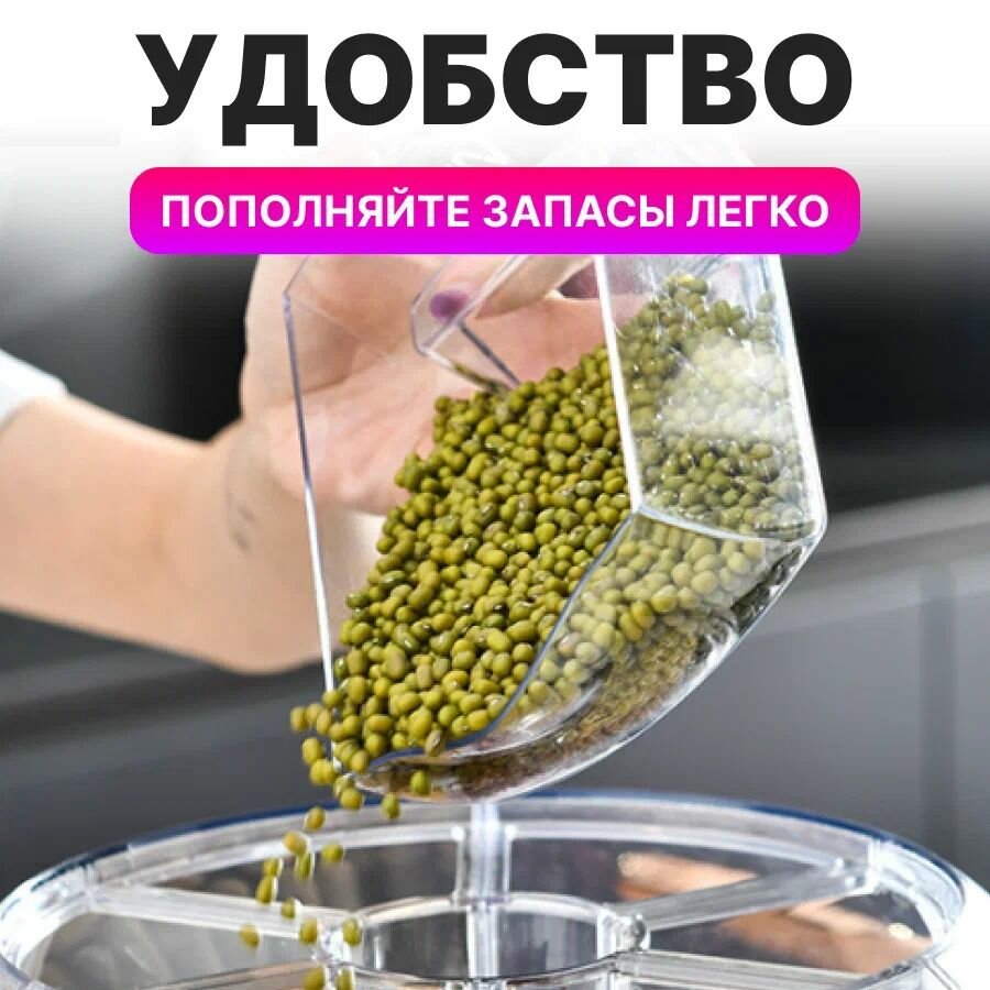 Диспенсер для круп и сыпучих продуктов с дозатором вращающийся круглый; контейнер для хранения сыпучих продуктов и круп кухонный пищевой: сравнение цен, характеристики, фото, актуальное наличие и цены.