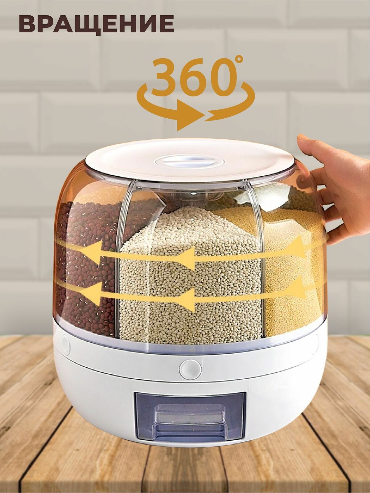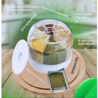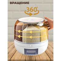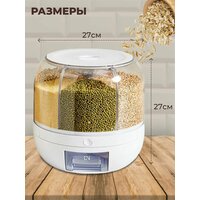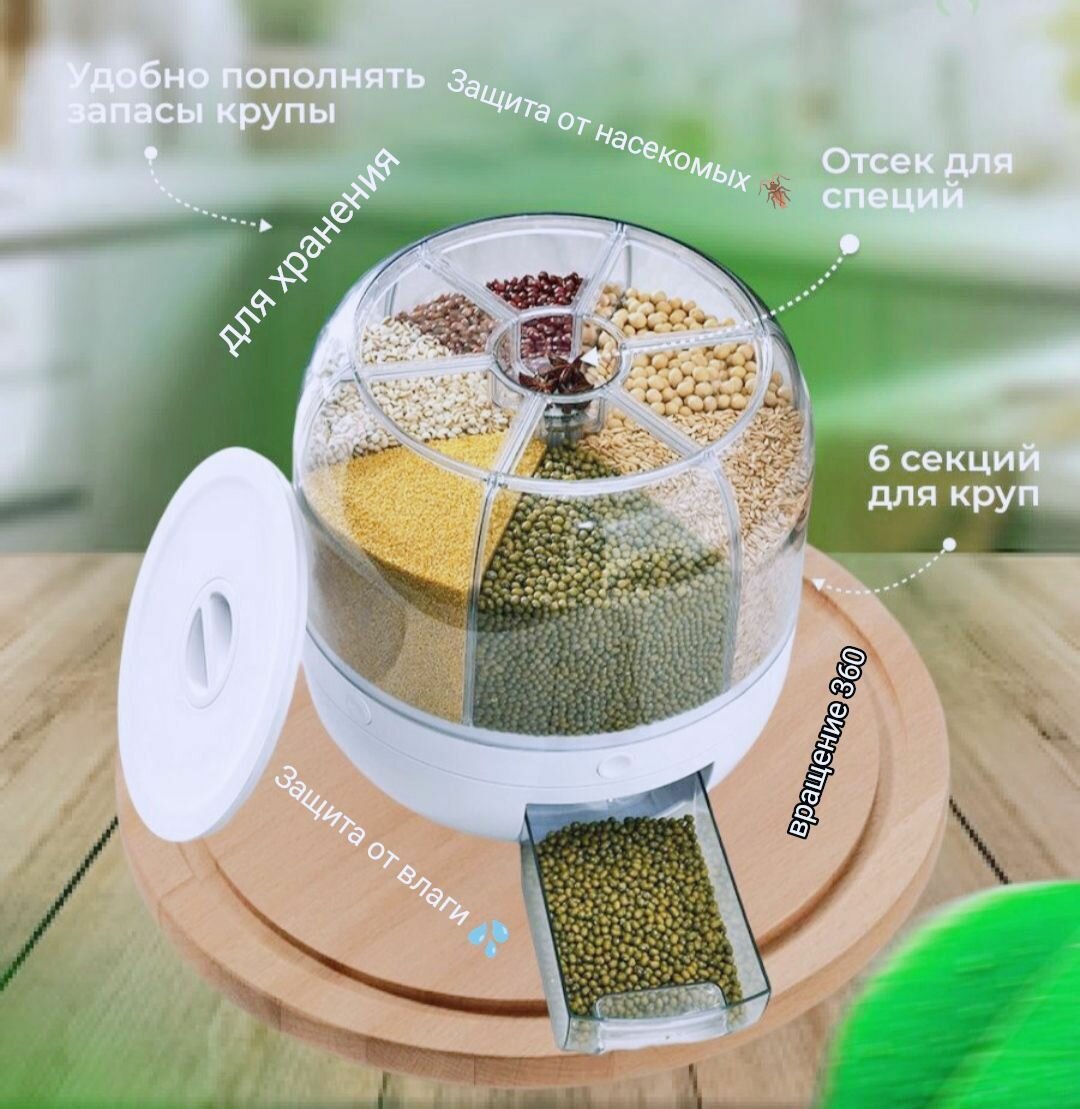 Диспенсер для круп и сыпучих продуктов / вращающийся кухонный органайзер для сыпучих продуктов / 6 секций на 8 литров / круглый пищевой контейнер для круп с дозатором, Емкость для сыпучих продуктов, Контейнер пищевой