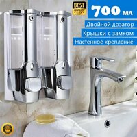Диспенсер для мыла крема шампуня, с замком двухсекционный порция 1,5-2,5 мл. Дозатор для дома офиса в гараж, ванной туалета кухни гигиенического душа душевой кабины, хромированный крепеж в комплекте