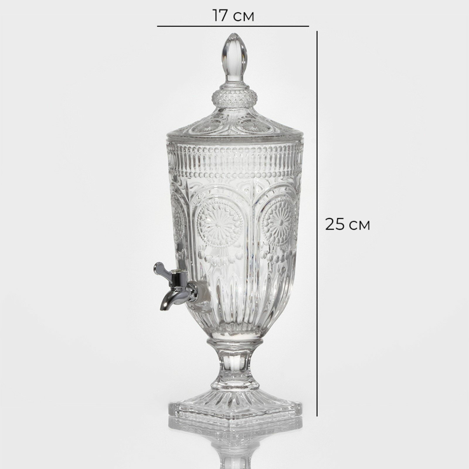 Диспенсер для напитков «Восход», 3 л, 25x19x50 см, стекло, цвет: прозрачный: сравнение цен, характеристики, фото, актуальное наличие и цены.