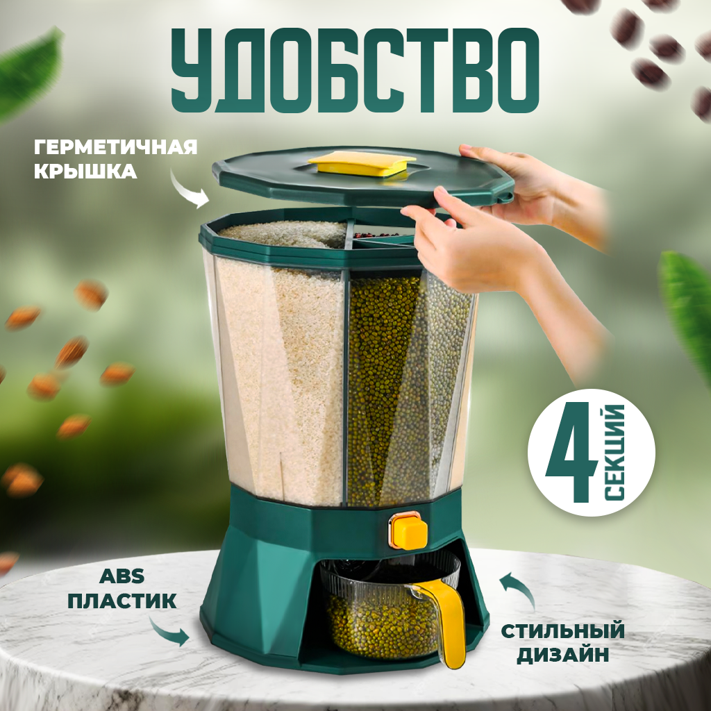 Купить Диспенсер для сыпучих продуктов вращающийся, 4 секции, 10 л, зеленый с доставкой по всей России. Диспенсер для сыпучих продуктов вращающийся, 4 секции, 10 л, зеленый: сравнение цен, характеристики, фото, актуальное наличие и цены.