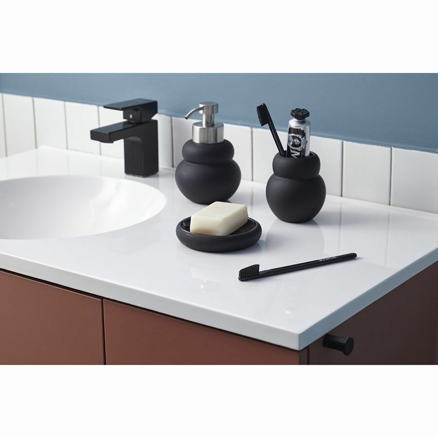 Коллекция для ванной комнаты Markl – гармоничное сочетание красоты природных материалов и функциональности современного дизайна. Выбирая эту линейки, вы получаете не просто стильные и практичные аксессуары, но и прекрасную возможность привнести в свой интерьер свежие решения. Диспенсер для жидкого мыла Mark имеет корпус из керамики с матовым покрытием черного цвета. Материал экологичный, устойчив к воздействию влаги и температурным перепадам. Наружные элементы дозирующего механизма изготовлены из нержавеющей стали, обладающей высокой прочностью, долговечностью и антикоррозионными свойствами. Комбинация матовых и глянцевых фактур делает дизайн интересным. Материалы: керамика, нержавеющая сталь. Размеры: 10,5х15,5 см. Объем: 420 мл. Цвет: черный. Диспенсер можно очищать в теплой воде с помощью мягких моющих средств. Запрещается использование агрессивной бытовой химии и абразивных материалов.