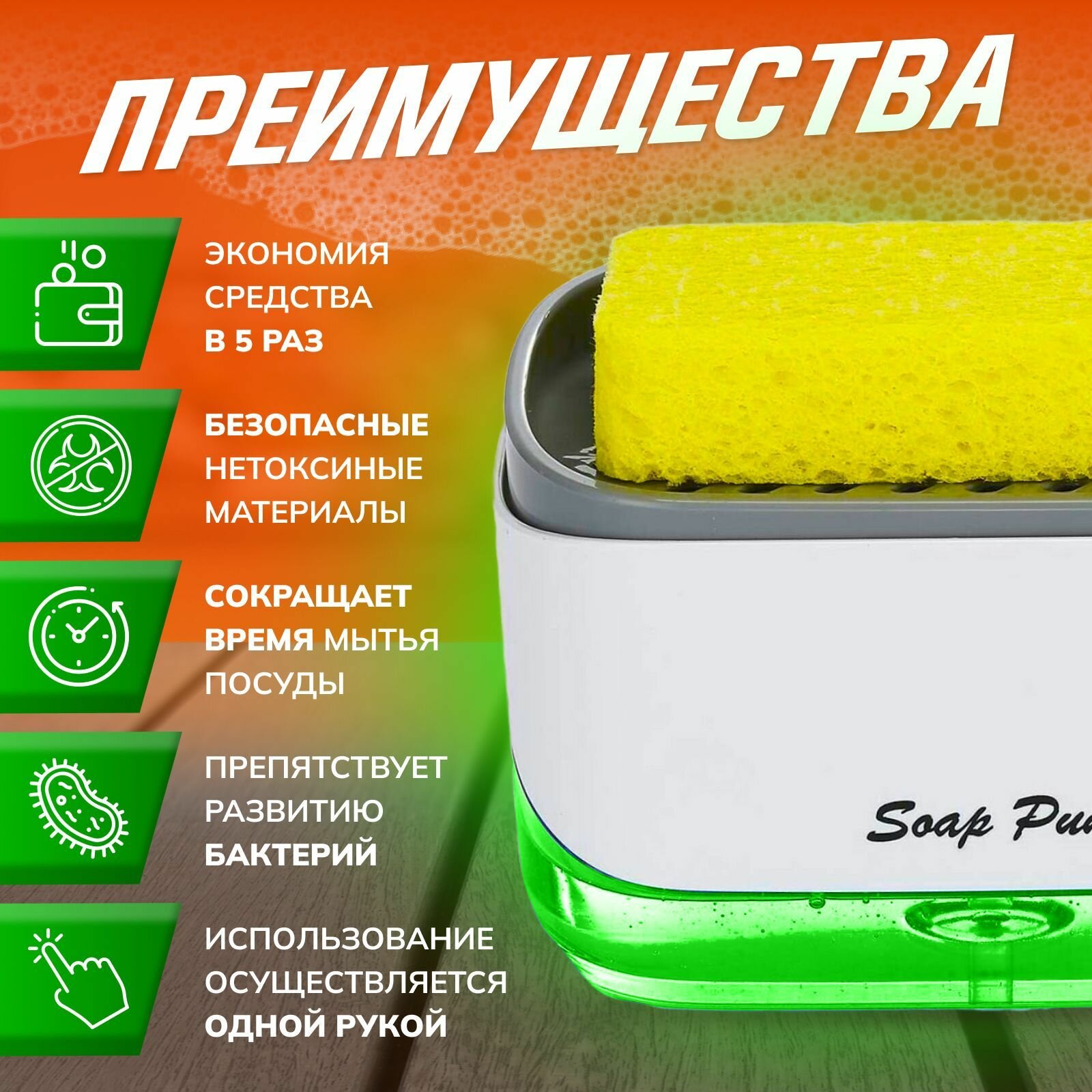 Купить Универсальный Диспенсер для моющего средства с губкой, дозатор для жидкого мыла, 350 мл, кухонный органайзер для губок с доставкой по всей России.