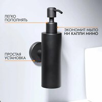 Эстетика и Элегантность: Матовый черный цвет этого диспенсера придает ему неотразимый вид, делая его не просто предметом ухода, но и стильным элементом вашего интерьера. Блеск и лоск материала придают изысканный вид, подчеркивая вашу индивидуальность и вкус.