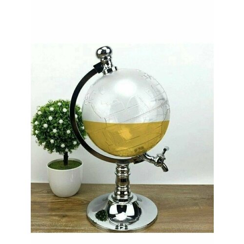 Оригинальный диспенсер для напитков способен придать любой вечеринке или праздничному ужину особый шик. Графин сделан в форме глобуса, включая характерную подставку. Напитки заливаются в диспенсер при помощи воронки, которая входит в комплект, и разливаются через специальный краник. Плотная крышка в верхней части диспенсера не позволяет напитку выдыхаться. Как пользоваться: Верхняя часть глобуса - крышка. Она открывается, в глобус наливается напиток, крышка закрывается - все готово! Теперь нужно открыть краник и разлить напиток по стаканам. Чтобы аккуратно налить в графин напиток, нужно воспользоваться воронкой, она есть в комплекте. Объем глобуса: 2,5 л. Очень элегантная и необычная вещь для людей, для которых важен не только вкус, но и уникальный внешний вид. Ваши гости будут в восторге!