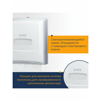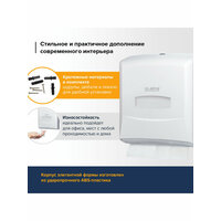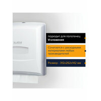 Диспенсер LAIMA 601426Диспенсер для полотенец LAIMA PROFESSIONAL CLASSIC (Система H3), V-сложения, белый, ABS-пластик, 601426Диспенсер для бумажных полотенец LAIMA PROFESSIONAL подходит для использования в местах с любой проходимостью, таких как туалетная комната в ресторане, офисе, торговом центре, аэропорту и т. д. Отличается высокими эксплуатационными характеристиками. Антивандальный корпус изготовлен из ударопрочного ABS-пластика, позволяет использовать две пачки полотенец V-сложения. Обеспечивает высокий уровень гигиены и комфортную подачу полотенец. Имеется окошко для контроля остатка полотенец. Сочетается с расходными материалами других производителей. Оборудован самозахлопывающимся замком с ключом. В комплект входят крепежные материалы для установки. Размер - 312х262х142 мм. Преимущества диспенсера для бумажных полотенец LAIMA PROFESSIONAL:1) Гигиеничность. Бумажные полотенца находятся внутри корпуса, их не касаются руки пользователей, на них не попадает грязь и капли воды. 2) Стильный и элегантный корпус белого цвета прекрасно впишется в интерьер помещения. 3) Легкость и простота в эксплуатации. 4) Не требует особого ухода. 5) Надежность конструкции. Вид расходных материалов: листовой. Диспенсерная система: H3. Артикул: 601426. Серия: нет. Подходят бумажные полотенца: V, ZZ (V). Режим подачи полотенец: ручной. Индикаторы: окно для контроля заполнения. Вместимость полотенец: 2 пач./рулонов. Антивандальный корпус: да. Тип закрывания: пластиковый ключ. Комплектация: крепежные материалы, лекало для установки. Тип элемента питания: нет. Сочетается с расходными материалами других производителей: да. Функция загрузки рулона полотенец одной рукой: да. Самозахлопывающийся замок: да. Материал замка: пластик. Материал корпуса: ударопрочный пластик ABS. Цвет корпуса: белый. Ширина: 262 мм. Высота: 312 мм. Глубина: 142 мм Бренд - LAIMA. Производитель - Китай. Артикул производителя - 601426. Штрихкод - 4606224094861Характеристики упаковки: Вес: 1,1490 кг. Объем: 0,0145 м3. Размеры: 14,5x31,8x27,3 см.